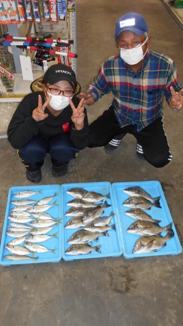 ■釣行日 令和3年10月18日 ■釣 場 仏谷筏,萩ノ下 奥城丸さんにて ■魚 種 チヌ25~35cm 14匹 アジ 22~25cm 17匹 ■仕掛け 若狭釣り ■エ サ ヌクイオリジナルダンゴスペシャル仕様、オキアミ、サナギ