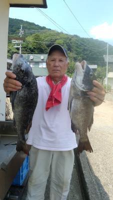 ■釣行日 令和7年8月20日 ■釣 場 仏谷 双児島筏にて 奥城丸さんにて ■魚 種 チヌ46~49cm 2匹 30~36cm 2匹 ■仕掛け ハリス1.2号 針2号 オモリなし 竿1.58m ■エ サ サナギ