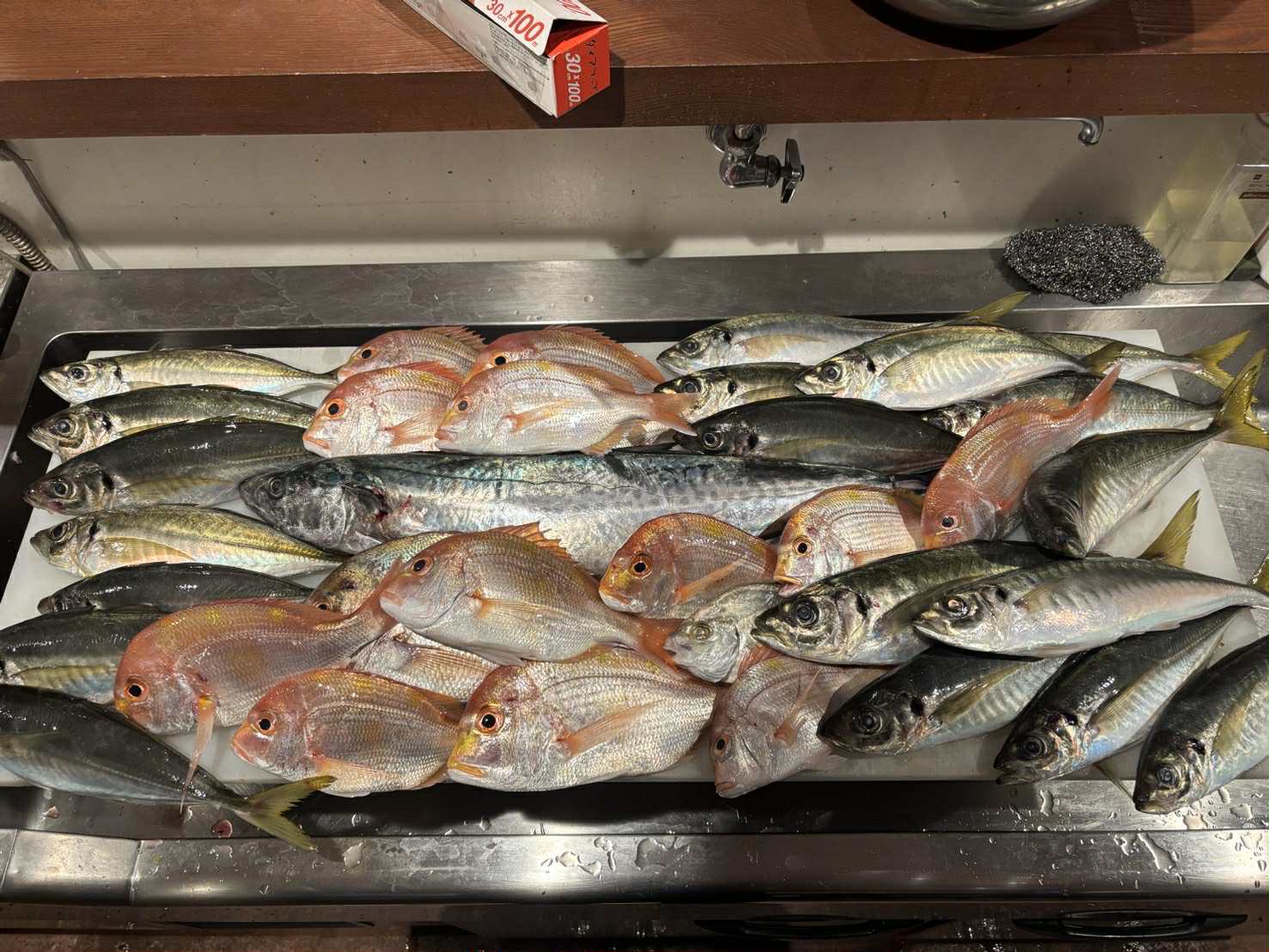 ■釣行日 令和7年11月5日 ■釣 場 田烏沖にて(長幸丸さんにて) ■魚 種 サワラ71,5cm 70cm マダイ最長寸41,5cmマアジ最長寸43,5cm ■仕掛け 天秤フカセ ■エ サ 当店おすすめオキアミ 光アミエビ仕様